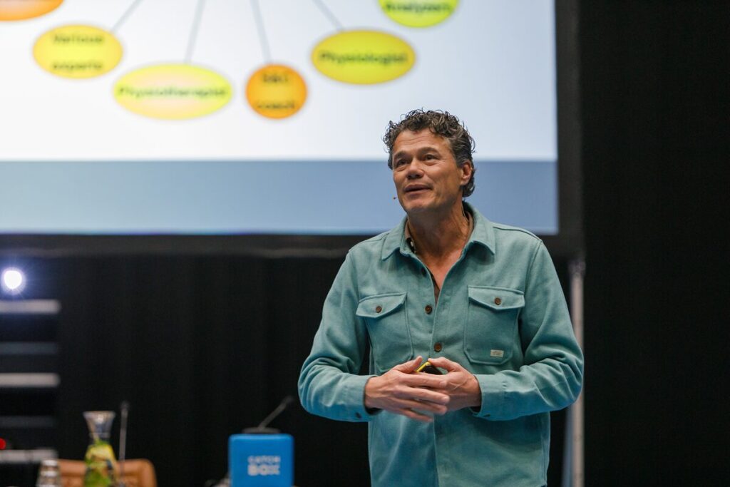 Na een break gaf topsportcoach Jacco Verhaeren iedereen verfrissende inzichten uit de wereld van zwemkampioenen. Dat gaat altijd om de balans tussen het individu en het team, ook bij individuele sporten. Zonder elkaar kom je er niet! Ook niet in de techniek.